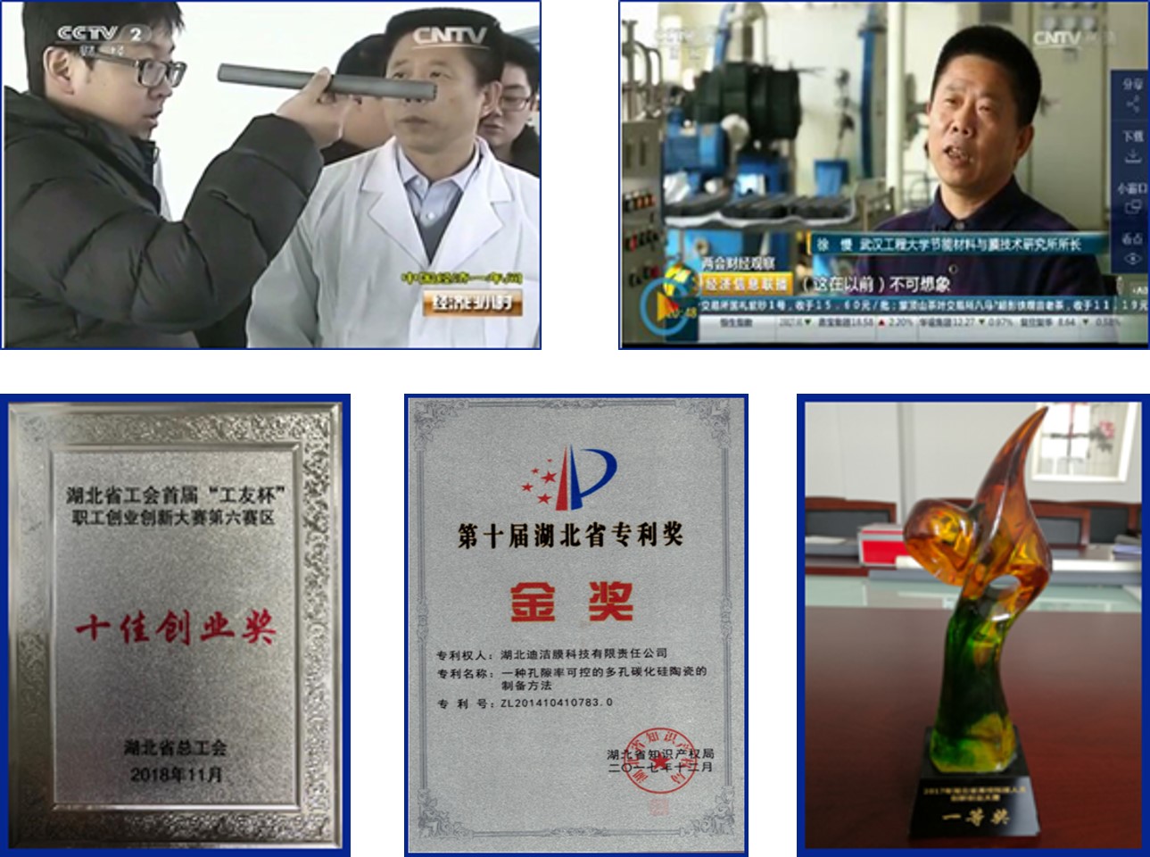 该科研成果的成功转化得到了中央电视台财经频道、新华社、人民日报、中国化工报、湖北日报等主流媒体广泛报道,取得了显著的经济和社会效益。项目先后获评湖北省首届高校科技人员创新创业大赛一等奖、湖北省首届“工友杯”创新创业大赛创业十佳奖、第十届湖北省专利奖金奖、湖北省科技进步一等奖等荣誉,团队也被评为湖北省“双创战略团队”自主创业团队。
