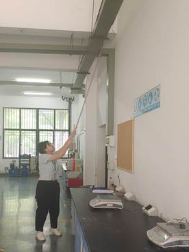 (通讯员:张义强)6月15日上午,材料科学与工程学院实验教学中心学生管理员组织开展室内蜘蛛网清理志愿活动,10余名本科生志愿者早早来到学生管理员值班室整理相关工具,实验中心主任李鹏程老师对参加志愿活动的学生进行了简单的培训。活动正式开始后,学生志愿者深入实验室和办公室逐间清扫房顶和墙面上的蜘蛛网,为学院实验办公环境的美化奉献一份力量。