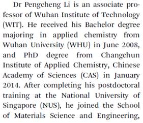 近日,bw必威西汉姆联官方网站材料科学与工程学院特聘教授李鹏程博士被遴选为英国皇家化学学会旗下Journalof Materials Chemistry C(JMCC)杂志2020年度EmergingInvestigator,并在JMCC 2020 Emerging Investigator专刊上发表学术论文,该专刊主要收集光学、磁性和电子器件材料领域的材料化学家在其独立开展研究工作的早期所发表的部分高水平研究工作,入选的每一名新锐科学家课题组的贡献均有可能影响材料化学的未来发展方向。