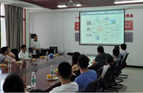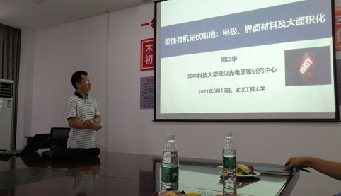周印华教授在材料学院A314会议室为bw必威西汉姆联官方网站师生作了题为《柔性有机光伏电池:电极、界面材料及大面积化》的学术报告,报告由学院相关方向的师生聆听了报告。周教授介绍了柔性可印刷有机光伏电池的广阔的应用前景,提出了实现高性能柔性、大面积有机光伏电池的关键问题。并介绍了他领导的研究组在电极及界面材料的开发及器件内各层间界面相互作用的调控提升有机光伏器件性能方面的研究成果。周教授从三个方面详细介绍了相关的研究成果:(1)导电聚合物PEDOT:PSS的性质调控,包括光学性质、电导率、功函数、化学氧化还原、机械性质、转印制膜等,以及在柔性、大面积、彩色化、叠层器件中的应用;(2)非富勒烯活性层与胺类界面层之间的化学反应、与ZnO界面层之间的光化学反应,提出质子化、金属络合等策略,开发新型PEI-Zn电子传输层,提升界面化学稳定性;(3)基于电极和界面材料的开发,实现了超薄/超柔、可全印刷制备的有机光伏器件。学院相关研究方向的师生聆听了报告,并与周教授就相关学术内容进行了互动交流。