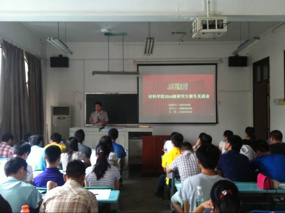 2014年9月10日上午10点,材料科学与工程学院2014级研究生新生见面会在武昌校区2409教室召开。院长马志斌教授、各专业教研室主任及2014级全体研究生新生出席会议。会议由研究生辅导员杜娟老师主持。