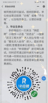 此次云双选所设岗位除了材料相关之外,涵盖电力热力水力、采矿、建筑、交通、教育、金融、科学研究、信息、制造、商贸等众多行业。求职者通过投递简历、文字互动、申请面试、视频面试等过程,即可参与企业招聘。同时,为便于毕业生成功求职,学院组织了求职成功的毕业生介绍经验,提高求职相关的积累储备。