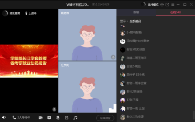 本网讯(通讯员熊兆胜男)6月4日晚上7:00,材料科学与工程学院通过腾讯云课堂举行了2017级考研就业动员大会。学院院长江学良、副书记肖平和副院长姚军龙,以及2017级全体本科生参加本次会议,2017级辅导员熊兆胜男主持动员会。