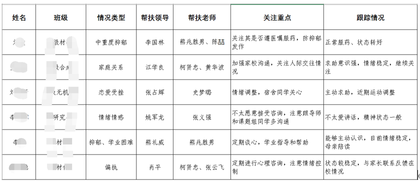 学院“五个一”危机干预机制部分内容