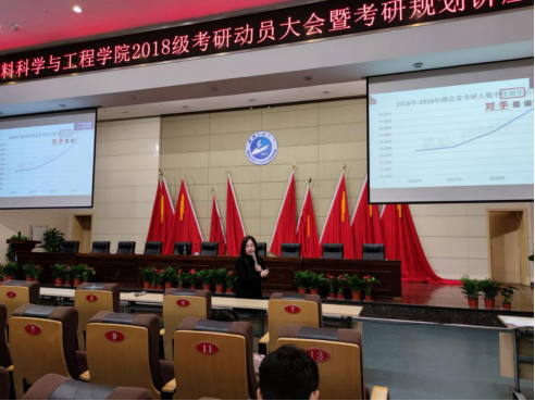 本网讯(通讯员 柯贤忠 靳易桥)为充分调动大三学生考研的积极性,让同学们更好地挖掘自身的潜能、更早地把握到更高层次深造机会;同时也为了帮助广大有意向报考研究生的同学了解考研、合理安排考研计划,提前准备、提前规划,3月20日晚上,材料学院在四教多功能报告厅召开2018级考研动员大会暨考研规划讲座,邀请了2021届毕业生考研代表周月明、张宇和文都教育讲师齐霄虹分别作了备考经验分享和考研规划讲座。学院2018级全体学生参加了讲座,讲座由2018级辅导员柯贤忠主持。