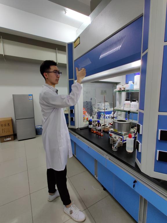 孛金钰同学在大学的目标十分明确,励志要成为一名“科研达人”,为此他从大一下学期开始就进入导师课题组实验室学习,积累科研实验操作经验,努力夯实实验理论基础。然而,刚进入实验室的他,虽潜心研究,但成绩缺不尽如人意。进入实验室初期,他怀着空杯的心态,从帮学长学姐们打扫实验室卫生、清洗瓶瓶罐罐做起,多听、多思、少言,努力做好任何一件哪怕是不起眼的事情。可能是他的踏实态度赢得了导师的信任,竟出乎意料地得到了一个科研项目。作为一个“科研小白”,他虽心里感到很惶恐,但还是硬着头皮接下了任务,开始了每天在教室、实验室、食堂、宿舍之间的四点一线生活。