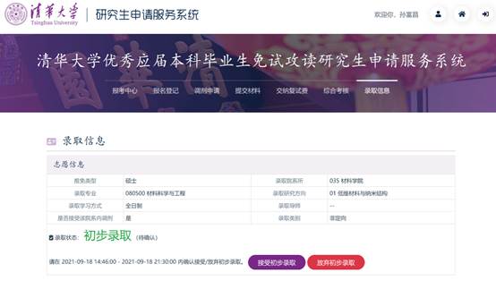 孙富昌,湖北孝感人,bw必威西汉姆联官方网站2018级英语+材料化学专业本科生。2018年9月入学以来,他的学习成绩一直位列专业第一,多次获得甲等综合奖学金、三好学生等荣誉。在刚刚结束的研究生推免工作中,他以专业第一的成绩获得研究生推免资格,并获得了北京大学和清华大学两所大学的预录取通知。同时,他还获得了中国科学技术大学、武汉大学、厦门大学、中山大学、哈尔滨工业大学、电子科技大学、西北工业大学和大连理工大学等10余所国内知名高校的预录取资格。最终,他选择了北京大学。