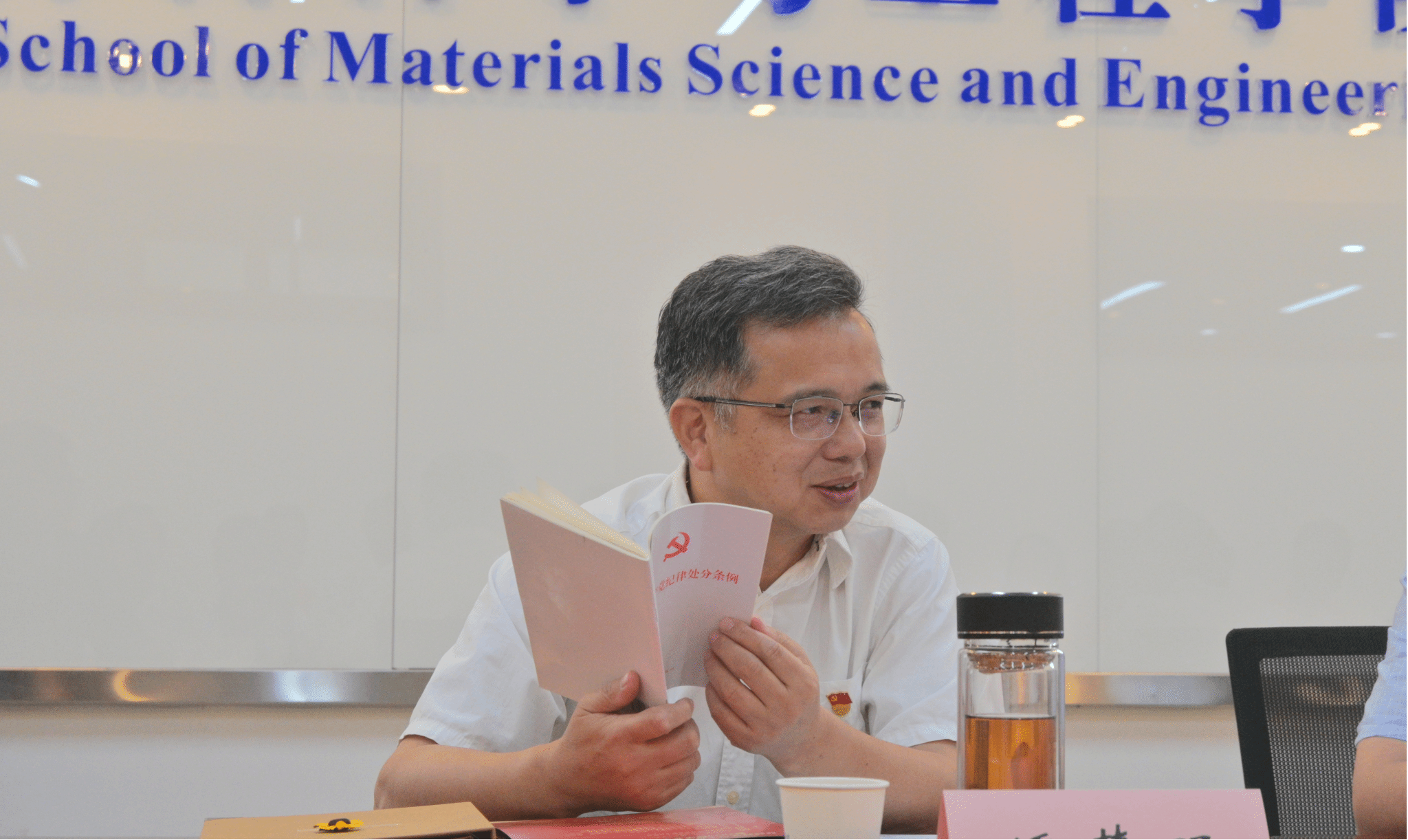 (通讯员 田明华)5月29日上午,材料学院在A314会议室举行研究生第五党支部党纪学习教育主题党日活动,校党委副书记(正厅长级)潘慧明以普通党员身份参加活动并讲授专题党课。校党纪学习教育工作专班成员,党委组织部常务副部长王涛、机电工程学院党委组织员刘汉红、环境生态与生物工程学院辅导员邓炜等同志到会开展党纪学习教育校级层面互学互鉴,电气信息学院党委副书记李国保、辅导员黄光亮、李阳、邬桢洁到会开展院级层面互学互鉴。材料学院院长江学良、组织员余武明、研究生第五党支部党员、学院各支部毕业生党员代表参加活动,活动特别邀请22届优秀本科毕业生、全国最美大学生刘耀东参加。活动由研究生第五党支部书记张琼主持。