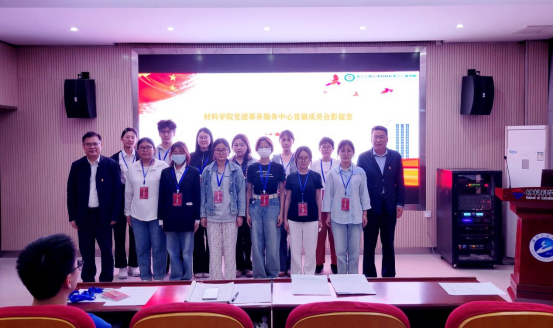 会上宣读了《关于成立材料学院党建事务服务中心的决定》,江学良为中心成员佩戴工作证,并合影留念。
