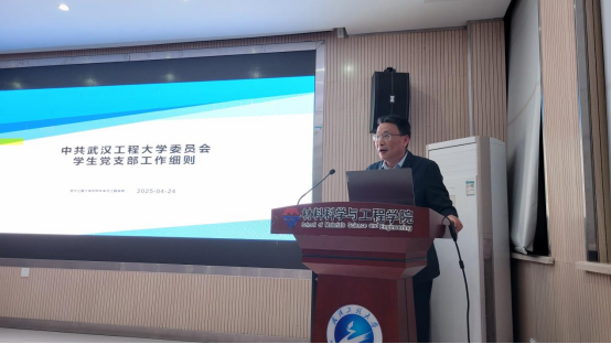 成立仪式结束后,组织员余武明以《中共武汉工程大学委员会学生党支部工作细则》和《大学生党员档案材料注意事项》为题进行培训班的第一场授课。(审稿 马科)