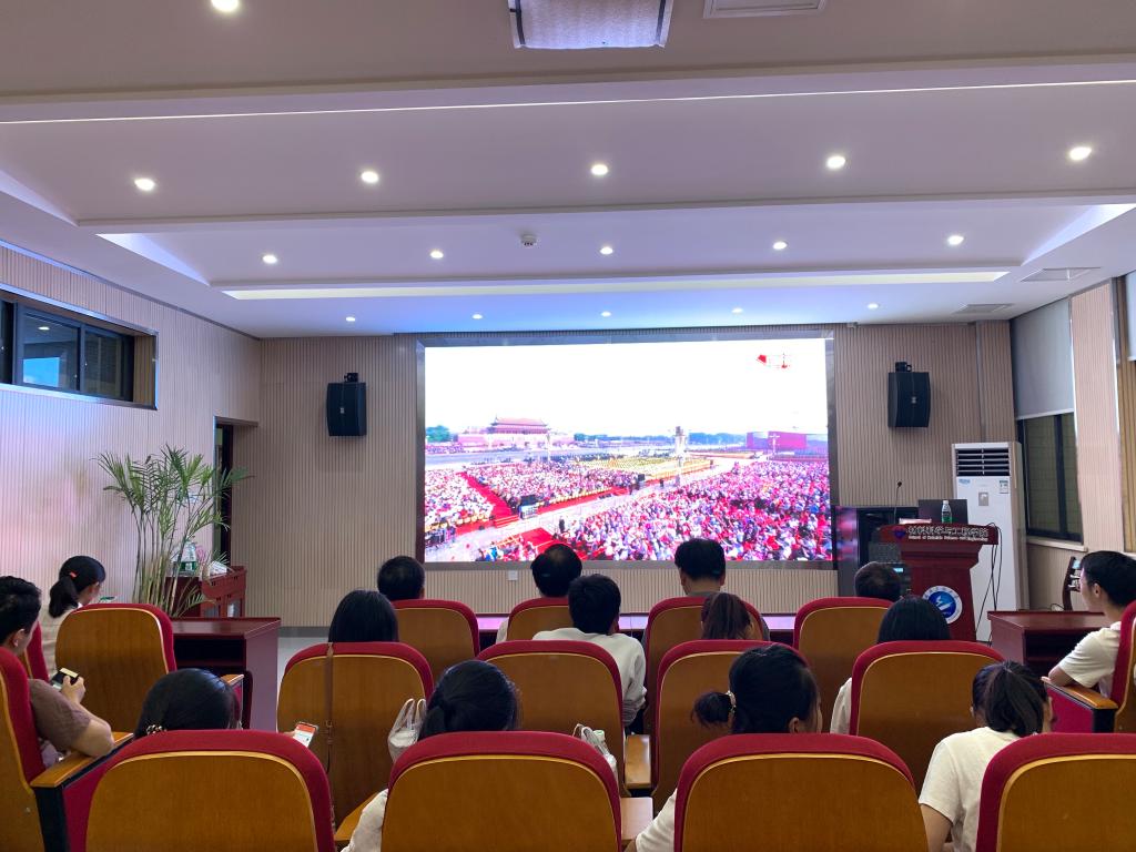 看到威武雄壮的阅兵队伍,热情洋溢的群众方阵,观看典礼的师生们抑制不住内心的激动,会场响起一阵阵热烈的欢呼和掌声。大家为祖国伟大的成就感到自豪,现场洋溢着热烈而浓郁的国庆气氛。