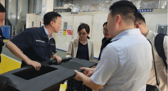 刘靖陪同学院一行参观了企业生产车间、发泡车间、热压成型车间以及产品测试实验室,详细了解企业生产、加工和检验等环节和流程。
