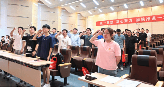 校优秀共产党员武晓薇带领全体毕业生党员重温入党誓词。通过入党誓词,全体党员再一次接受党性洗礼。
