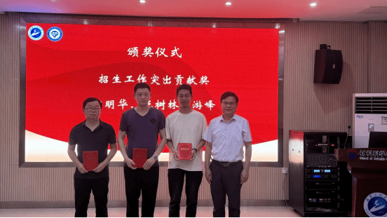 大会伊始,由江学良宣读2023年度招生工作表彰决定,授予田明华、游峰、王树林三名同志“招生工作突出贡献奖”,丁子夕、王小敏等三十八名同志“招生宣传先进个人”荣誉称号,学院党委希望受表彰的同志再接再厉,为招生工作取得更好成绩再创新功,希望全体教职工以受表彰的先进个人为榜样,树立大局意识,高度重视并积极参与2024年招生宣传工作。随后江学良为“招生工作突出贡献奖”“招生工作先进个人”颁奖。