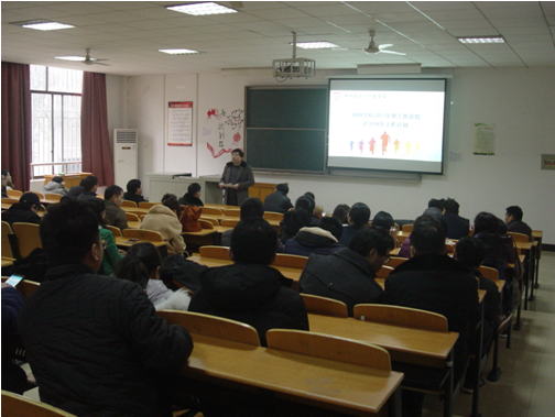 1月18日下午2:30,材料学院在流芳校区L3103教室召开学院年终总结大会,学院领导班子成员及全院教职工参加了大会,大会由学院院长刘治田教授主持。