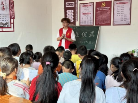 在龙泉村,志愿者们以“青春恰似火,扬帆正当时”为主题,开展结业典礼,孩子们上台表演;志愿者们也为他们精心准备了结业礼物,以此表达对小朋友们的不舍之情及深厚友谊。