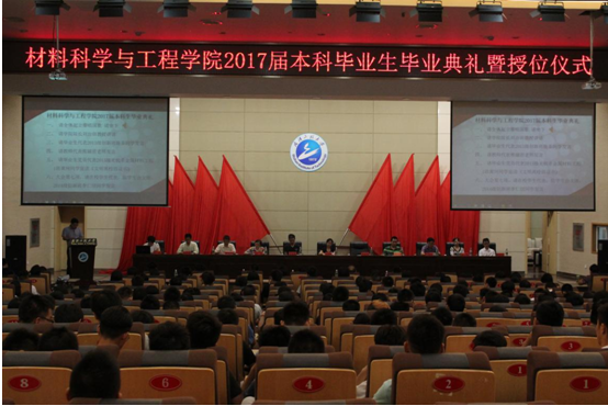 (通讯员 杜娟)2017年6月14日下午2点,材料科学与工程学院2017届本科生毕业典礼暨授位仪式在流芳校区四教多功能报告厅举行。