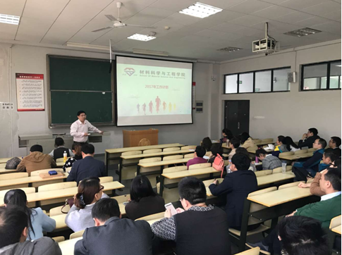 (通讯员  陈恩雨)4月13日下午,材料学院在流芳校区4103教室举行2017年工作会暨党风廉政建设责任书和综治责任书签订会议。学院全体教职工参加了大会,会议由党委书记谢春晖主持。