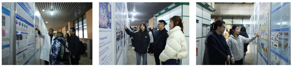 参会学生于现场面向专家就各自研究成果进行了详尽的阐述。在交流环节中,学生们与专家们深入探讨了研究领域的前沿问题,各位专家及教授针对不同的研究主题给予了细致的指导与建议。专家和材料科学与工程学院老师们对墙报进行评选,评选出了“卓越墙报奖”和“优秀墙报奖”。