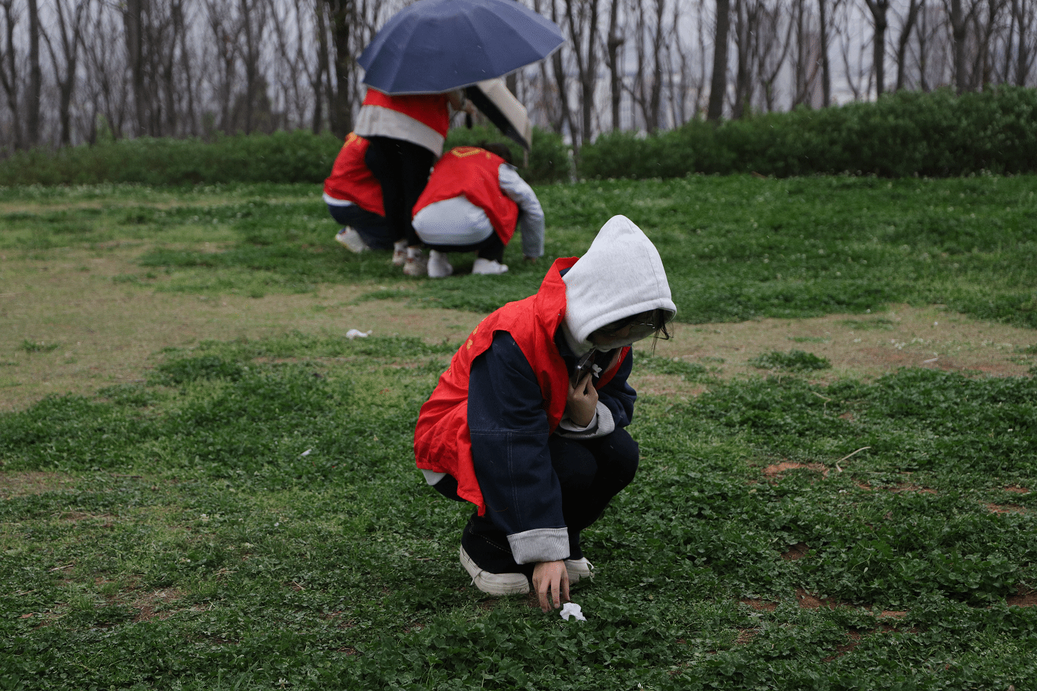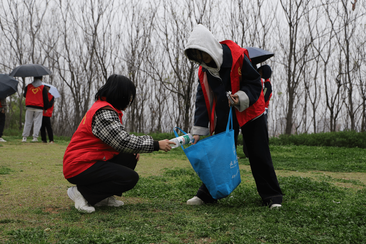 下午3点,培训结束后,“小蓝钻”们身着红马甲来到黄龙山公园,携带垃圾钳、垃圾袋对黄龙山游步道、公园草坪等区域展开地毯式清理。大家分工明确,有的仔细捡拾散落在游步道上的落叶和纸屑,有的将收集到的垃圾分门别类地装进垃圾袋。尽管天气阴沉,小雨淅淅沥沥,但志愿者们的热情却丝毫未减。在“小蓝钻”们的共同努力下,黄龙山公园沿途焕然一新。