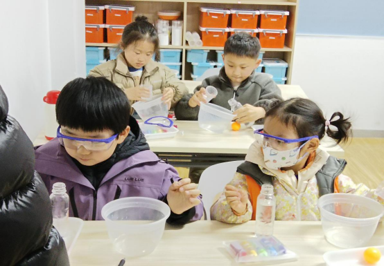 (小朋友们跟着志愿者老师一起做各种小实验)