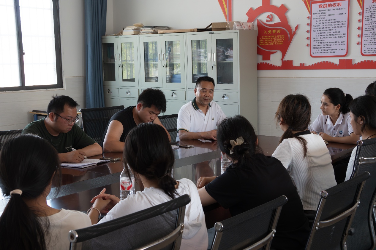 当日下午,为深入了解校情,明确支教任务,保障工作顺利开展,在赤壁镇中学召开了座谈会。赤壁镇中学潘校长在会上致欢迎辞,对实践队的到来表示热烈欢迎,并高度肯定了实践队十年以来的坚守和付出。他勉励实践队成员充分发挥专业优势,拓宽孩子们的视野,激发他们对未来的憧憬,并指出支教也是实践队成员自我成长的过程,希望他们珍惜这次机会,在实践中锻炼自己,提升综合素质。材料科学与工程学院团委书记热孜瓦古力也在会上强调:“支教,不仅仅是知识的传授,更是一场心灵的对话与成长的陪伴。希望你们用真心去关爱每一个孩子,尊重他们的个性与梦想,用耐心和智慧引导他们成长。”