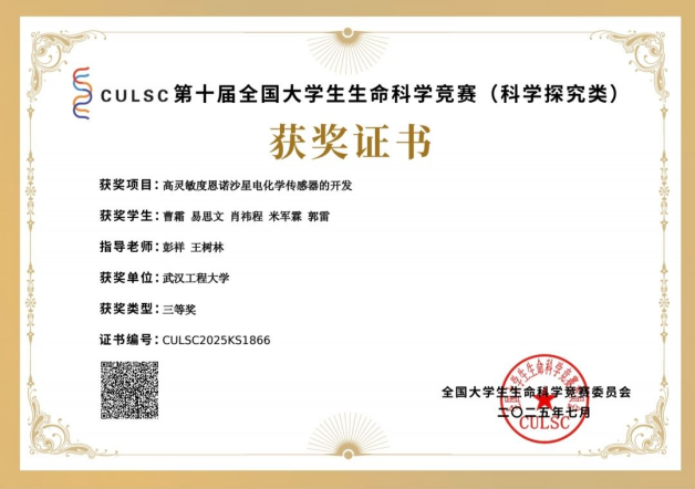 第十届全国大学生生命科学竞赛创新创业类获全国一等奖2项、三等奖2项,科学探究类获全国三等奖3项,全方位体现生命科学领域学科优势。
