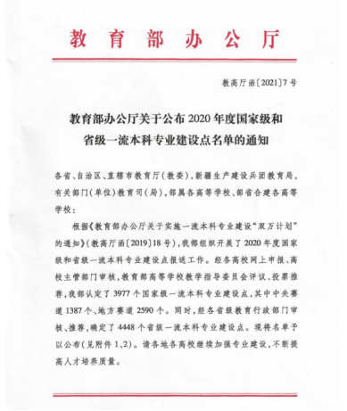 (通讯员:王恒)近日,教育部办公厅印发了《关于公布2020年度国家级和省级一流本科专业建设点名单的通知》(教高厅函[2021]7号),公布了2020年度国家级和省部级一流本科专业建设点名单。bw必威西汉姆联官方网站推荐申报的无机非金属材料工程专业成功入选“国家级一流本科专业建设点”。
