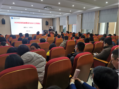 会上,学院院长江学良从党建与思政教育、本科教学、研究生教育、科学研究、师资队伍等五个方面全面总结了2020年学院目标完成情况,分析了存在问题和改进措施,并针对下半年重点工作提出五点要求:一是积极做好招生宣传、专业工程认证和国家一流专业建设;二是做好一流课程、专业教材建设及省级教学成果奖申报;三是精心组织,做好国家自科基金与省级科技奖申报工作;四是以引进国家级人才为目标,加强师资队伍建设;五是加强团队建设、凝练突显学科特色。他希望全院教职工再接再厉,打好“十四五”开篇基础。