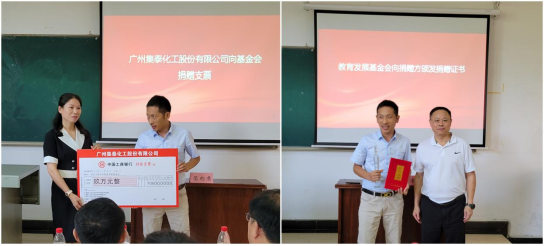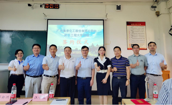 (通讯员田明华)9月15日下午,广州集泰化工股份有限公司向武汉工程大学捐赠签约仪式在流芳校区一教L1101室举行。广州集泰化工股份有限公司市场部华中大区经理张文华等企业来宾8人,武汉工程大学校友工作处处长邓新洲、教育发展基金会专职副秘书长毕灵敏,材料学院党委书记王涛,院长江学良,副院长熊礼威、姚军龙出席签约仪式,材料学院本科生及研究生代表参加了签约仪式,仪式由材料学院党委副书记张琼主持。