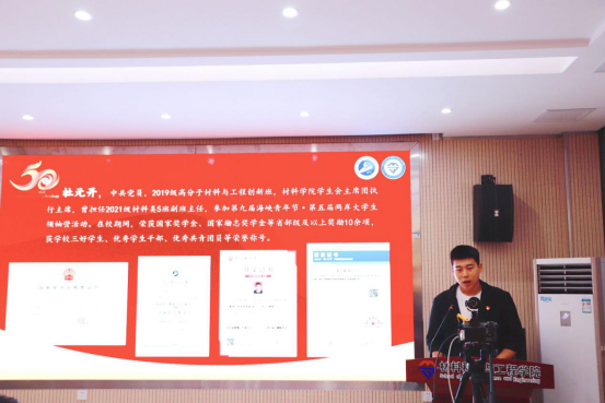 研究生新生代表王祖浩发言,他表示很荣幸能够再次以研究生的身份在母校继续深造。同时,表示自己作为工大材料学院的研究生,不仅要在导师的指导下完成自身的学习、科研任务,更要肩负起承接学术传统,传递知识火炬的使命,敢于开拓进取、勇于创新。