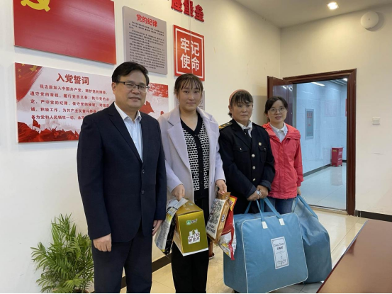 杨佳峰向贾鑫和她妈妈转赠了郭明义爱心团队捐款1万元,江学良、张琼给贾鑫送上棉被、牛奶、豆浆等爱心物资。