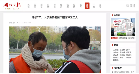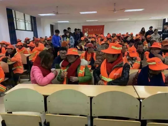 材料学院连续7年开展“温暖城市园丁”活动,为东湖高新技术开发区环卫工人送出亲手编织围巾1600余条。温暖城市园丁,不仅仅要温暖本人,还想送温暖送到家,26名志愿者利用暑假时间,开展“温暖城市园丁——我是小老师”活动,为环卫工人子女开展学业帮扶。