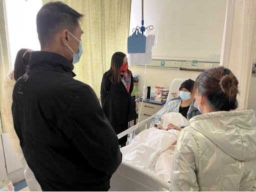 本网讯(通讯员 张茜 热孜瓦古力·牙生)2月15日,材料学院党委副书记张琼、2022级辅导员张茜、热孜瓦古力再次到武汉协和医院看望患病学子谭学谦。