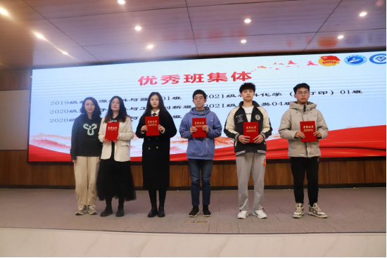 过去一年,材料学院涌现出一大批敢于担当、品学兼优、奋发有为、无私奉献的优秀青年和先进集体,张琼、翟莹和现场辅导员分别为“最美大学生”、“国家奖学金”、“工大精英学子”“三好学生标兵”“三好学生”“优秀学生干部”“寒假社会实践优秀个人”“材苑先锋”“进步之星”“优秀班集体”等先进个人和集体颁发荣誉证书,并鼓励他们再接再厉、勇攀高峰,并号召其他同学向先进榜样学习。