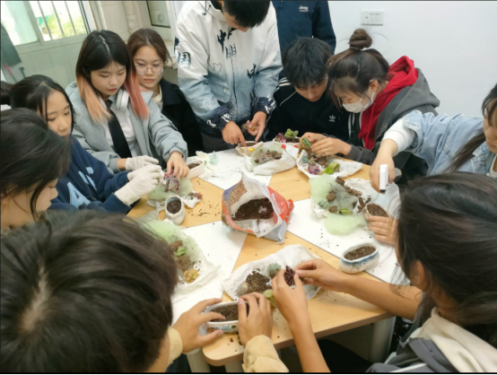 材料学院如是心理协会成员郝佳媛向大家介讲述了本次活动的目的,种植多肉的步骤及其注意事项。几十种不同品种、形态各异的多肉,供大家自由选择、自由搭配。从剥离泥土、调配基质到栽种多肉,参与的同学们认真对待每一个步骤。虽然是第一次从事园艺活动,但是大家热情高涨、静心专注。