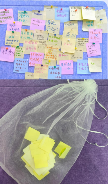 正值325(善爱我)之际,如是心理协会举办“小如心晴树洞”摆点活动,引导学生表达情绪、分享快乐、诉说烦恼。同学们写下的心情纸条,可以选择贴在展板上和其他同学进行分享,或者折叠后放入“解忧袋”中,由小如阅读后进行回信,无论是哪种形式,对同学们来说都是一种情感的表达和释放。此次活动为学生提供了情绪宣泄渠道,帮助学生正确认识及处理情绪,营造了良好心理育人、助人氛围。