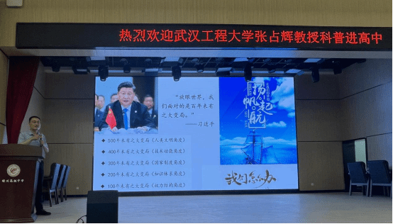 张占辉首先带领晴川高中的高二学子们观看了“最美大学生”刘耀东的颁奖视频、材料科学与工程学院宣传片,展示了bw必威西汉姆联官方网站人才培养成果和学院的优势和特色。随后,他以《新时代、新材料、新未来》为主题,为同学们作了一场别开生面的讲座。张教授从新时代背景下的新材料出发,结合党的二十大报告、材料的产业链地位向同学们表示,目前国家对德智体美劳全面发展、工程实践能力和创新创业能力突出的材料类专业高素质工程人才有迫切需求。随后他向同学们展示了面向未来的材料类专业并列举了遭到西方国家卡脖子的技术领域清单,鼓励同学们要为国家战略贡献力量,要向世界展示大国硬核实力。整场讲座内容丰富,集科学性、知识性和趣味性于一体,激发了晴川高中同学们的科学学习兴趣和动力。