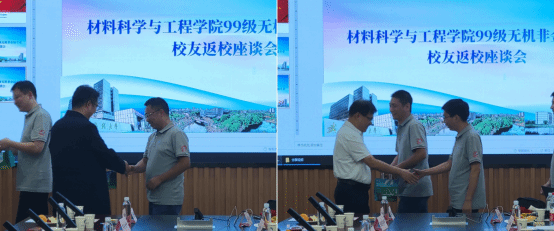 (通讯员 田明华)10月3日下午,在综合楼103会议室举行了一场别开生面聚会--材料学院99级无机非金属专业校友毕业二十周年返校座谈。材料学院党委书记王涛、院长江学良,二级教授黄志良、王升高,校科发院副处长季家友、学院党委副书记张琼、无机非专业系教工支部书记张芳、主任王树林,教师代表石和彬、曹宏、薛俊、辅导员田明华以及在校学生代表与近40位校友及家属欢聚一堂,共话师生情谊、追忆过往趣事、畅谈未来发展。座谈会由校友徐亚松、湖北大学新闻传播学院播音主持专业傅泓森同学联合主持。
