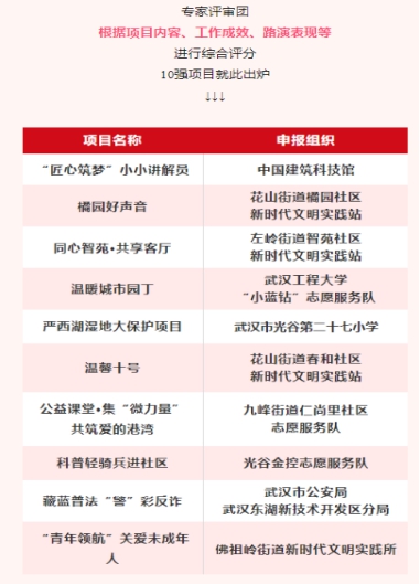 东湖高新区新时代文明实践志愿服务项目大赛于2023年7月启动,经历团队申报、审核把关、专家评议等环节,于7月中旬组织初评,材料学院“温暖城市美容师”项目,经综合评分,从66个申报项目中进入前20,并于8月16日参加复赛,以出色的表现和优异的成绩挺进决赛。