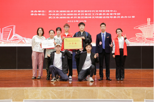 (通讯员 安佰谦)为进一步培育志愿服务项目,打造志愿服务品牌,深化新时代文明实践活动,根据市、区文明委工作要点,由东湖高新区新时代文明实践中心主办,东湖高新区党工委宣传部、文明办承办的“光谷志愿红,建功新时代”2023年新时代文明实践志愿服务项目大赛决赛在10月10日于东湖高新区管委会8号楼报告厅举行,共有10个项目同台路演。经过同台路演、精彩比拼,材料学院团干热孜瓦古力·牙生、安佰谦以及“小蓝钻”志愿服务队带来的决赛项目“为爱传‘橙’,温暖城市‘美容师’”荣获大赛二等奖!