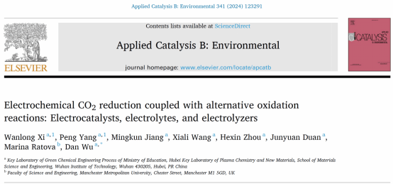 论文详情:Electrochemical CO2 reduction coupled with alternative oxidation reactions: Electrocatalysts, electrolytes, and electrolyzers, Applied Catalysis B: Environmental, 2024, 341, 123291.