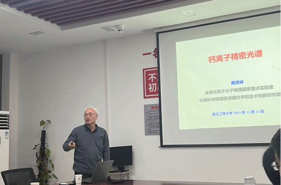 本网讯(通讯员:刘倩倩)12月14日,应等离子体化学与新材料湖北省重点实验室邀请,中国科学院精密测量科学与技术创新研究院高克林研究员,作了题为“钙离子精密光谱”的学术报告。报告会由重点实验室主任赵洪阳主持,材料科学与工程学院相关方向师生参加了本次报告会。