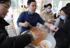 本网讯(通讯员:安佰谦)一年一冬至,一岁一安康。为了让师生更好地感受传统节日节气,体验自己动手包饺子和做美食的氛围与乐趣,增进师生情谊,12月22日,党委学生工作部于化雨轩食堂二楼举办微特“一站式”学生社区文化节——“工大美好‘食’光,师生喜迎冬至”活动,活动由材料科学与工程学院承办。党委学生工作部副部长徐迪迪、党委研工部副部长陈朝娟、校团委副书记邓欢,各学院副书记、辅导员代表和同学们共同参加了本次活动。