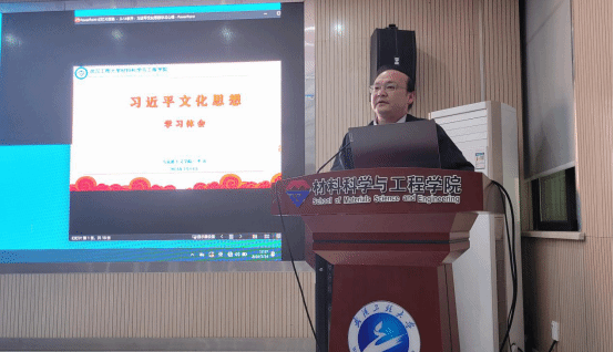 本网讯(通讯员 田明华)3月14日,材料学院在A326报告厅举行党委理论学习中心组第三次集体(扩大)学习,特邀学院思政导师、马克思主义学院副教授李齐就学习贯彻习近平文化思想进行专题辅导。学院党委委员、教工和学生党支部支部书记、师生党员代表、党外人士代表参加学习,会议由学院党委书记王涛主持。
