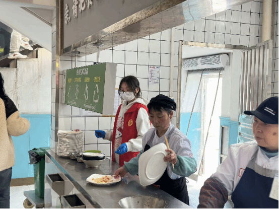 在食堂志愿服务活动中,材料学院“小蓝钻”们展现了对同学们的关心和关爱,用实际行动践行雷锋精神。本次活动不仅仅是为了维护食堂秩序和环境的整洁,更重要的是在培养同学们的文明素养和自律意识,让“雷锋精神”融入到日常生活中,将“雷锋精神”内化于心、外化于行,体验到奉献他人带来的快乐和满足。