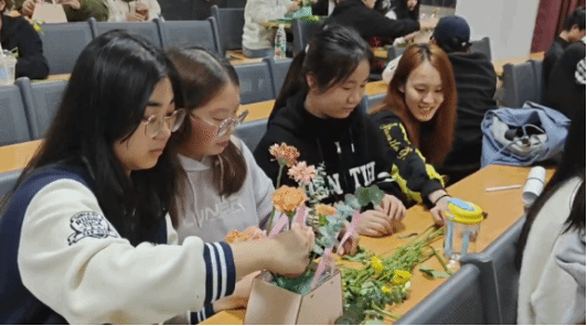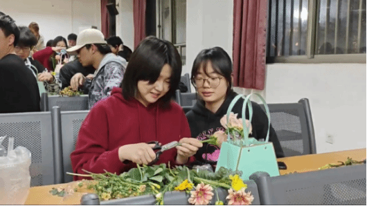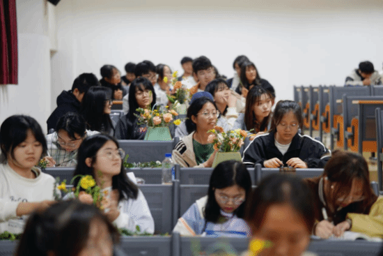 (通讯员 芦梦荻)为了帮助学生缓解压力、放松心情,享受春日时光、拥抱美好生活,4月7日晚,由学生工作处、心理健康中心主办,材料科学与工程学院、“小溪流”辅导员工作室承办的“‘花’点时间 ‘植’愈我心”插花实践活动在L2107教室顺利举行。本次活动邀请华中农业大学园艺疗法项目兼职讲师杨雪作为主讲老师,心理教育中心主任徐迪迪、材料学院心理辅导员芦梦荻、各学院辅导员代表及80余名学生参与本次活动。
