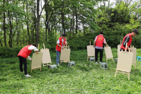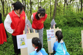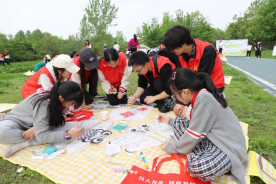 初春的黄龙山,阳光和煦,精彩的开场节目让每个人都倍感兴奋愉悦。孩子们聚坐于预先铺设的软垫上,挥舞着画笔,捕获着自然美景里升腾的灵感,为风筝涂抹上属于自己的色彩,或是涂绘春间风物,或是勾勒嬉游趣事,奇思妙想的设计让志愿者们都纷纷点赞。小朋友们天马行空的畅想在志愿者、老师的悉心指导下尽数展现。