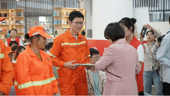以书会友,以文沁心,环卫工人与大学生朋友们互赠书礼,共享读书之乐。