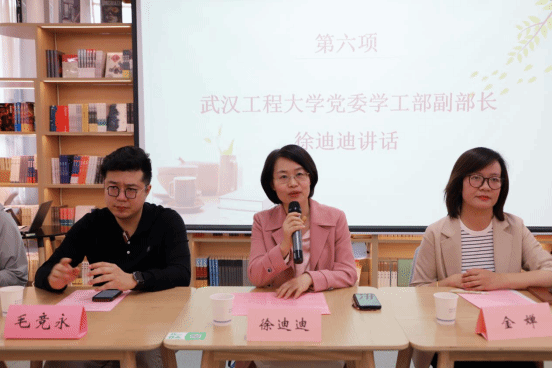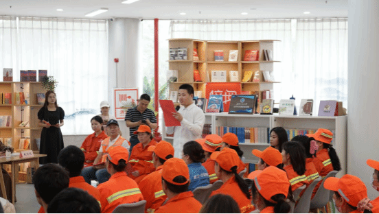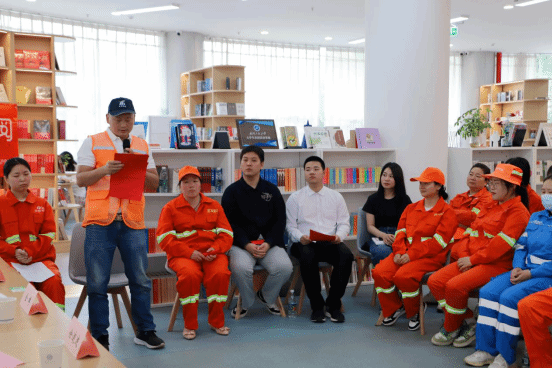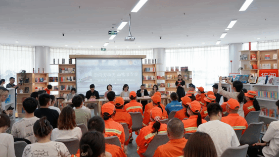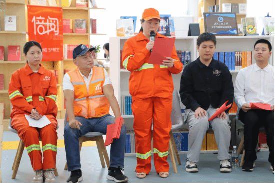 本网讯(通讯员 张茜)为迎接第29个世界读书日,营造书香满校园文化氛围,以饱满的精神状态喜迎新中国成立75周年。4月22日,学校“小溪流”辅导员工作室、材料学院团委与武汉市东湖高新技术开发区城市管理执法局联合开展的“崇尚劳动美 品味书卷香”世界读书日活动在微特“一站式”学生社区倍阅空间成功举办。学校学工部副部长徐迪迪、图书馆阅读推广部主任毛竞永、校团委专职团干翟莹、材料学院团干张茜、东湖开发区城管局办公室副主任金婵、城管局环卫科长吕长生、特邀嘉宾武汉安华公司法人钱彩凤、以及东湖开发区环卫工人和学生代表共50余人参加本次活动。